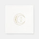 Améliorez votre expérience culinaire grâce à la "Napkin en papier Mariage céleste". Contre une toile blanche propre, la lune et les étoiles du croissant d'or, accompagnées des initiales élégamment simples personnalisables du couple, apportent une élégance céleste à votre table. Les phases de lune délicatement intégrées dans le design ajoutent une touche de symbolisme, faisant de chaque serviette une oeuvre d'art céleste.