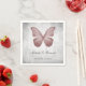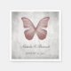 Serviettes Mariages élégantes et simples, avec un papillon rose contre un arrière - plan gris grinçant. Ce design est un choix unique pour un mariage moderne. Facile à customiser avec vos détails mariages. Cliquez sur "Customiser" pour trouver d'autres options de personnalisation.
