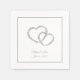 serviettes en papier mariage en format blanc avec un ton argenté deux coeurs imprimé et des noms personnalisés avec date. Customisez cet article et changez les noms d'exemples dans le vôtre.