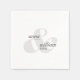Des serviettes simples et modernes pour mariage avec des noms de mariée et de mariée et mariage date en texte noir et des nuances de gris.