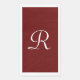 Cette serviette en papier peut être n'importe quelle couleur arrière - plan que vous sélectionnez. L'Arrière - plan est bordeaux ; le monogramme est blanc. Un grand cadeau pour un mariage ou un ménage. Les clients apprécieront la disponibilité de serviettes à disposition, surtout avec la peur de la santé récente. Tous droits réservés © 2024 Alan & Marcia Socolik..