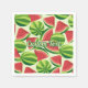 Tranches de pastèque rouge mûre. Motif sans couture. Couleur arrière - plan personnalisée. Texte personnalisé.