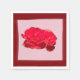 Un rose surligné sur une serviette entourée d'une planche et d'un arrière - plan coloré.