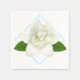 Des serviettes en papier de fête en blanc, avec une reproduction artistique d'une jolie fleur de gardenia. Customisez cet objet ou achetez tel quel. Image stock