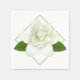 Des serviettes en papier de fête en blanc, avec une reproduction artistique d'une jolie fleur de gardenia. Customisez cet objet ou achetez tel quel. Image stock