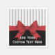 La conception de ce produit présente un ruban rouge illustré sur fond noir et des rayures grises. Avec ses graphismes classiques uniques, il crée des serviettes en papier élégantes et chic avec un texte personnalisé et une couleur de rayure favorite pour les anniversaires, les mariages, les fêtes de Noël ou tout autre événement spécial.