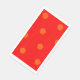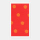 Cette serviette en papier présente de gros pois orange sur la surface rouge.