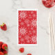 La serviette d'hôte en papier de vacances est présentée dans un imprimé festif de flocons de neige en hiver. Couleur rouge