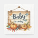 Complétez votre table de fête avec ces serviettes de baby shower d'automne, avec l'expression "Baby is Coming" entourée de citrouilles, pinecones, feuillage d'automne, et deux petits oiseaux. Ces serviettes rustiques sont à la fois pratiques et décoratives, ce qui en fait la touche finale parfaite pour votre baby shower d'automne confortable. Conçus pour coordonner avec les assiettes et les tasses assorties, ils cravate votre thème entier ensemble.