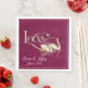 Cette serviette en papier mariage est présentée dans la taille standard du dîner avec des cygnes d'amour et un échantillon de noms et de date personnalisés. Montré dans les couleurs de Cassis, champagne et blanc Customiser cet article et changer les noms et la date à votre. Nous offrons un livre d'invité mariage et des plaques de papier dans notre magasin sous le dossier "mariage".