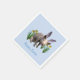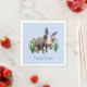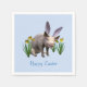Un cochon de couleur claire portant des oreilles de lapin rose et violet se trouve dans un coin ensoleillé de jonquilles.