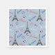 Seamless Paris text illustration with Eiffel Tower, tricolor heart shapes and French flag decoration on blue background for Valentine's Day