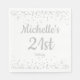 Elégant et moderne blanc avec parties scintillant argent femme's 21ème anniversaire de fête serviettes de papier personnalisées avec un nom et un âge. Tout le texte est personnalisable.