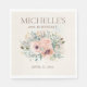 Serviettes en papier pour fêtes d'anniversaire élégantes et personnalisées. Décoré de belles fleurs d'aquarelle rose vif et de feuilles verts sauge sur un arrière - plan doré brillant. Personnalisée avec le nom de l'invitée d'honneur et sa date de fête. Contactez-moi pour obtenir de l'aide sur la personnalisation ou pour demander l'appariement ou la coordination des produits Zazzle pour votre parti.