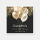 Un arrière - plan noir avec des ballons d'or et une parties scintillant en faux or. Personnalisez et ajoutez un nom et un âge. Lettres blanches.