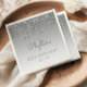 Ces serviettes en papier chic et élégantes de fête du 80e anniversaire présentent une bordure brillante en argent faux parties scintillant et un arrière - plan argenté à l'ombre. Personnalisez-les avec le nom de l'invitée d'honneur en écriture manuscrite grise, avec son anniversaire et la date ci-dessous en police sans serif.