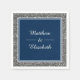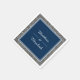 Serviettes élégantes en papier de mariage avec une bordure élégante en faux argent en parties scintillant contre un arrière - plan bleu marine.