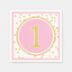 Serviettes en papier de premier anniversaire rose et or chic. Doté d'un cercle rose avec un faux numéro d'or 1 et des confettis. Les dessins sont des graphiques imprimés à plat - PAS de PARTIES SCINTILLANT RÉELLE.