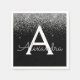 Serviette En Papier Parties scintillant noire en argent et Monogramme