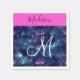 Fille et glamour rose chaud, violet, aqua turquoise, vert et bleu parties scintillant scintille couronnes/ tiaras mermaid princess monogramme nom et serviette initiale. Votre nom personnalisé est écrit en noir avec un arrière - plan rose chaud, et votre monogramme personnalisé est écrit en blanc avec un élégant script écrit à la main.