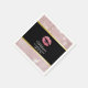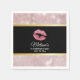 Serviettes en papier avec un arrière - plan composé d'un motif feuille moderne rose d'or tropical moderne et tendance. Le dessus est recouvert d'un cadre noir avec une bordure dorée, à l'intérieur sont des lèvres de loterie rose.