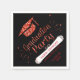 Créez vos propres serviettes en papier rouge et noir pour la fête de graduation - arrière - plan noir solide. Le centre est une fausse parties scintillant, une casquette de graduation rouge. Lit 'Graduation Party' dans le look de parties scintillant rouge assorti avec le diplôme blanc/diplôme défilé sous le dessous. Nom de la maîtrise et de l'école, ainsi que l'année de classe personnalisée ci-dessous dans le texte rouge moderne. Des serviettes de fin d'études personnalisées assez chic pour les diplômes d'université. Correspond à pratiquement n'importe quel thème de fête de remise des diplômes, élégants styles de remise des diplômes, ou décoration de fin d'études aux couleurs rouge et noir. Serviettes de fête de graduation personnalisées parfaites si les couleurs de votre école sont noir et rouge. Vous trouverez dans notre boutique Zazzle.com/angela65* des invitations à des soirées de remise de diplômes, ainsi que d'autres styles de soirée de remise de diplômes.