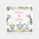 Ces serviettes d'anniversaire mignonnes présentent des animaux safari à l'aquarelle avec des feuilles d'or et des confettis.