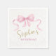 Serviette En Papier Pastel Pink Bow & Elegant Gold Script Anniversaire