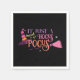 Cute Fun Pastel Witch Hocus Pocus Halloween Casquette Broomstick Napkins, Bienvenue à vos invités avec ce mignon éffrayant et amusant tapis de porte Halloween personnalisé. Le design stylisé de la typographie comprend "C'est juste un tas de Hocus Pocus" libellé jaune, violet et rose pastel, orange, bâton de départ et sorcière, casquette sorcier, en arrière - plan noir.