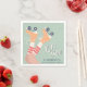 serviettes de fête d'anniversaire à la sauge verte patinée avec une illustration rétro de patins à rouleaux orange pastel sur une fille portant des chaussettes à tube rayé rouge et blanc et "Let's Roll" en écriture blanche. Ajoutez son nom de typographie bleu turquoise foncé.