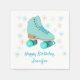 Ces serviettes personnalisées sont parfaites pour les fêtes d'anniversaire à thème du patinage à rouleaux. Ils présentent une illustration d'un patinage à quatre rouleaux de style rétro en turquoise avec des formes d'astérisque coordonnées. Votre message apparaît sous le graphique en écriture de script turquoise.