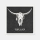 Invitation vos invités à votre journée spéciale avec ces serviettes de cocktail en papier de rodéo crâne noir et blanc de la ferme de l'ouest Belle texture rustique arrière - plan pour customiser vos informations en utilisant la typographie en détresse. Copyright de l'image Marg Seregelyi Photography.