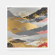 Un paysage serein d'inspiration japonaise avec des montagnes et des arbres superposés, agrémenté de détails dorés chatoyants. Cette composition élégante allie esthétique traditionnelle et abstraction moderne.