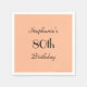 Un solide arrière - plan de foutre de pêche décore cette serviette en papier à la mode, minimaliste et simple pour la fête d'anniversaire. Bien que la valeur par défaut indique "80e anniversaire", vous pouvez facilement modifier le texte pour le nom, le nombre d'années et l'événement. Très féminine et féminine ! Tous droits réservés © 2023 Alan & Marcia Socolik.