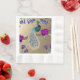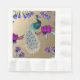 Un paon coloré est perché sur une branche ornée de fleurs vives. L'arrière - plan présente une teinte dorée avec des détails texturés, ce qui renforce l'élégance générale de la scène.