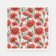 Des serviettes en papier dans un motif délicat de pavots rouges vibrants avec des tiges vertes profondes et des feuilles, sur un certain temps arrière - plan, avec, chaque fleur de pavot unique courbé et tordu, comme si se balançant doucement dans la brise.