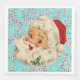 Design Vintage et sucré d'un Père Noël Jolly contre un arrière - plan turquoise avec menthe poivrée et sucres de canne.