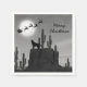 Cette serviette en papier de Noël Joyeux présente un loup silhouette hurlant à la pleine lune avec Père Noël volant son traîneau. L'arrière - plan est une scène désertique du sud-ouest avec des cactus. -