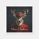 Portrait d'un renne en costume officiel rouge, il travaille probablement pour le Père Noël. Joyeux Noël vous tous