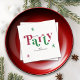 Festive and fun, this holiday party napkin features retro stylish typography spelling out Party in bright red and green. Personalize the text template with your name or other desired text. Other matching party products are available to coordinate your event with ease.
