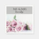 Elégant personnalisation de M. et Mme napkin. Cette jolie serviette présente une écriture noire avec un arrière - plan gris et des roses rose/violet avec un arrière - plan blanc. Vous pouvez le personnaliser avec votre nom de famille et même modifier la couleur du texte et le style de police à l'aide de l'option personnaliser. Parfait pour un mariage ou une fête d'anniversaire !