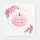 Sweet, petite fille, flores roses et cadres géométriques en or rose pour divertir vos invités de baby shower. Un citrouille rose centré au milieu avec "Un petit Citrouille est en route !"