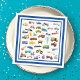 Célébrez l'anniversaire de votre petit garçon avec un motif sur mesure de certains de ses véhicules préférés entourés de bleu — camions de pompiers, voitures de police, hélicoptères et avions, trains, taxis, véhicules de construction, et plus ! Cette serviette en papier amusante ajoute une touche personnalisée supplémentaire à la fête d'anniversaire de votre petit.