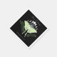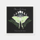 Un bouillonnant papillon de nuit vert est entouré de phases de lune et de feuilles verts luxuriants contre un arrière - plan noir profond.