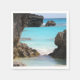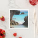 Serviettes en papier avec une photo pittoresque montrant la côte tropicale des Bermudes. De gros rochers déchiquetés contrastent avec la mer turquoise et éclatante.