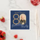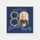 Serviette En Papier Photo Navy Blue Gold Elegant Custom 80th Birthday
