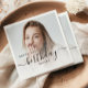 Serviettes de fête d'anniversaire modernes avec une photo personnalisée. Remplacez facilement l'exemple d'image par une photo de l'invité d'honneur. Le mot "anniversaire" apparaît dans un élégant script d'écriture manuscrite noire. Personnalisez le texte avec le nom et l'année d'anniversaire en noir sans serif police. Une superposition de dégradé blanc aide à faire apparaître le texte.
