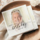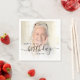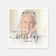 Serviettes de fête d'anniversaire modernes avec une photo personnalisée. Remplacez facilement l'exemple d'image par une photo de l'invité d'honneur. Le mot "anniversaire" apparaît dans un élégant script d'écriture manuscrite noire. Personnalisez le texte avec le nom et l'année d'anniversaire en noir sans serif police. Une superposition de dégradé blanc aide à faire apparaître le texte.