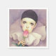 Forfait de 50 serviettes de cocktail en papier blanc avec une image vintage du triste clown Pierrot avec une larme dans l'oeil et une rose rose à long tige dans la main. Pierrot est un personnage qui a évolué en apparence avec Romantic, Decadent, Symbolist, et les premiers Modernist Theatre et art. Cette image est l'image populaire de Pierrot dans les années 1980. Voir la serviette en tissu assortie, serviette de cuisine, set de table en tissu, set de table en papier et dessous de verre. Voir l'ensemble de la collection de serviettes Tubular 80s dans le FOOD/BEV | Section Linge.