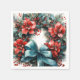 Serviettes en papier avec une jolie couronne de Noël. Une image festive avec une couronne de pin décorée de fleurs rouges, sainte et un joli arc bleu. Délicieux.